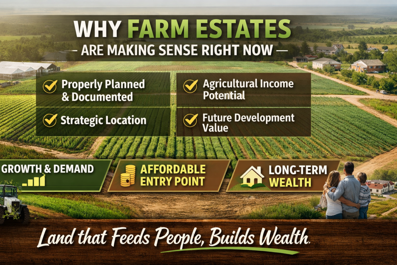 Farm estates are quietly becoming one of the smartest real estate investments today. While many people focus on luxury houses and overcrowded cities, smart investors are positioning early in modern farm estates, and the reason is simple: growth is heading there.